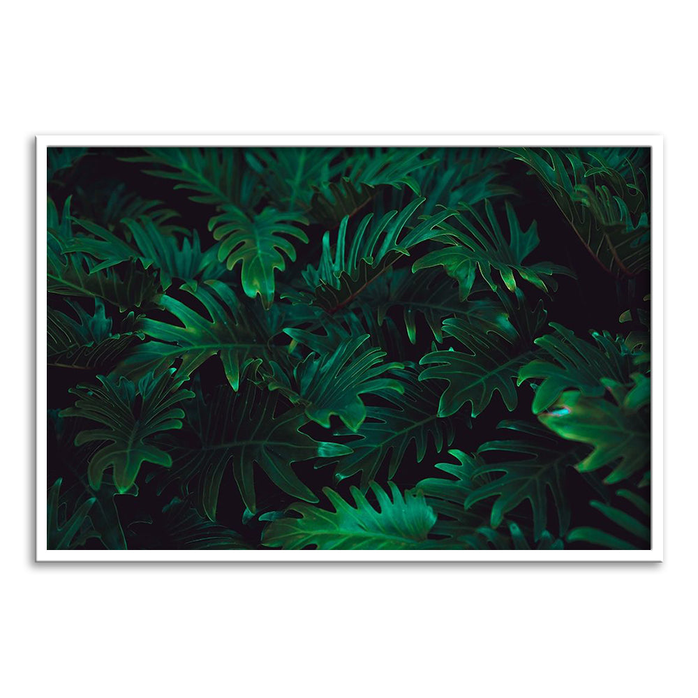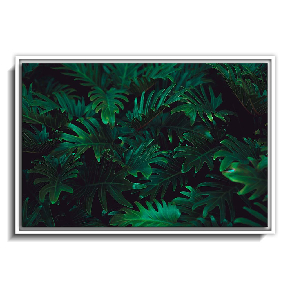 The canvas is wrapped and stretched similar to a gallery wrap and then mounted inside a wooden frame, leaving a small "gap", to create the illusion that the canvas is floating within the frame.