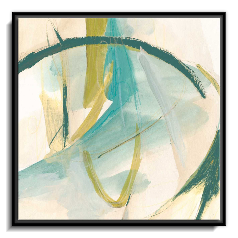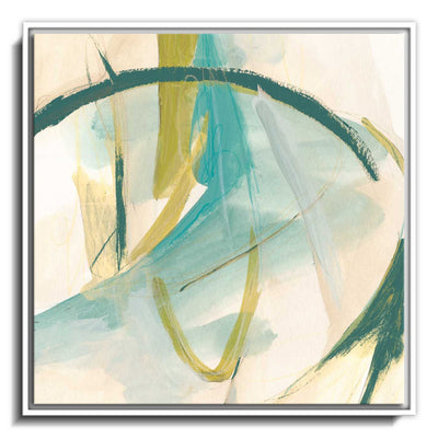 The canvas is wrapped and stretched similar to a gallery wrap and then mounted inside a wooden frame, leaving a small "gap", to create the illusion that the canvas is floating within the frame.