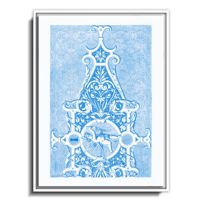 The canvas is wrapped and stretched similar to a gallery wrap and then mounted inside a wooden frame, leaving a small "gap", to create the illusion that the canvas is floating within the frame.