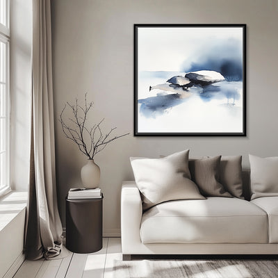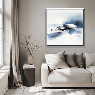 The canvas is wrapped and stretched similar to a gallery wrap and then mounted inside a wooden frame, leaving a small "gap", to create the illusion that the canvas is floating within the frame. Price: $$$