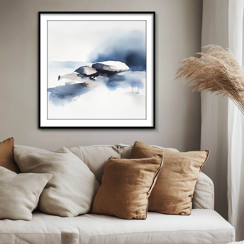 A high quality PVC frame with an off-white mount. Thickness of mount ranges from 1 - 4 inches depending on size of the artwork. The artwork is protected by a layer of clear glass or acrylic. Price: $$