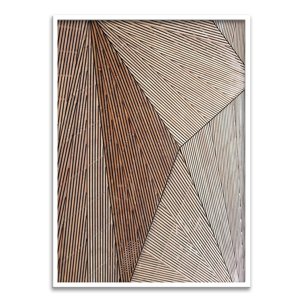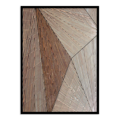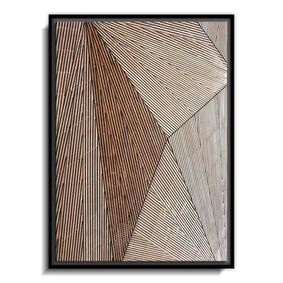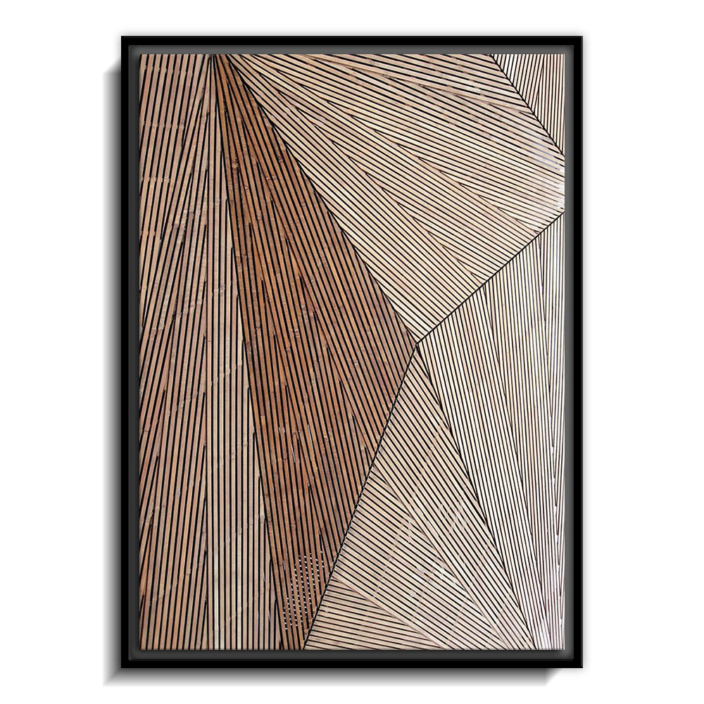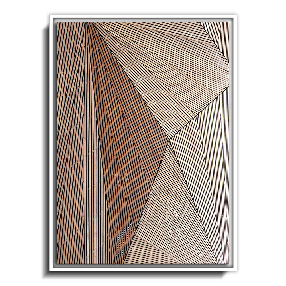 The canvas is wrapped and stretched similar to a gallery wrap and then mounted inside a wooden frame, leaving a small "gap", to create the illusion that the canvas is floating within the frame.
